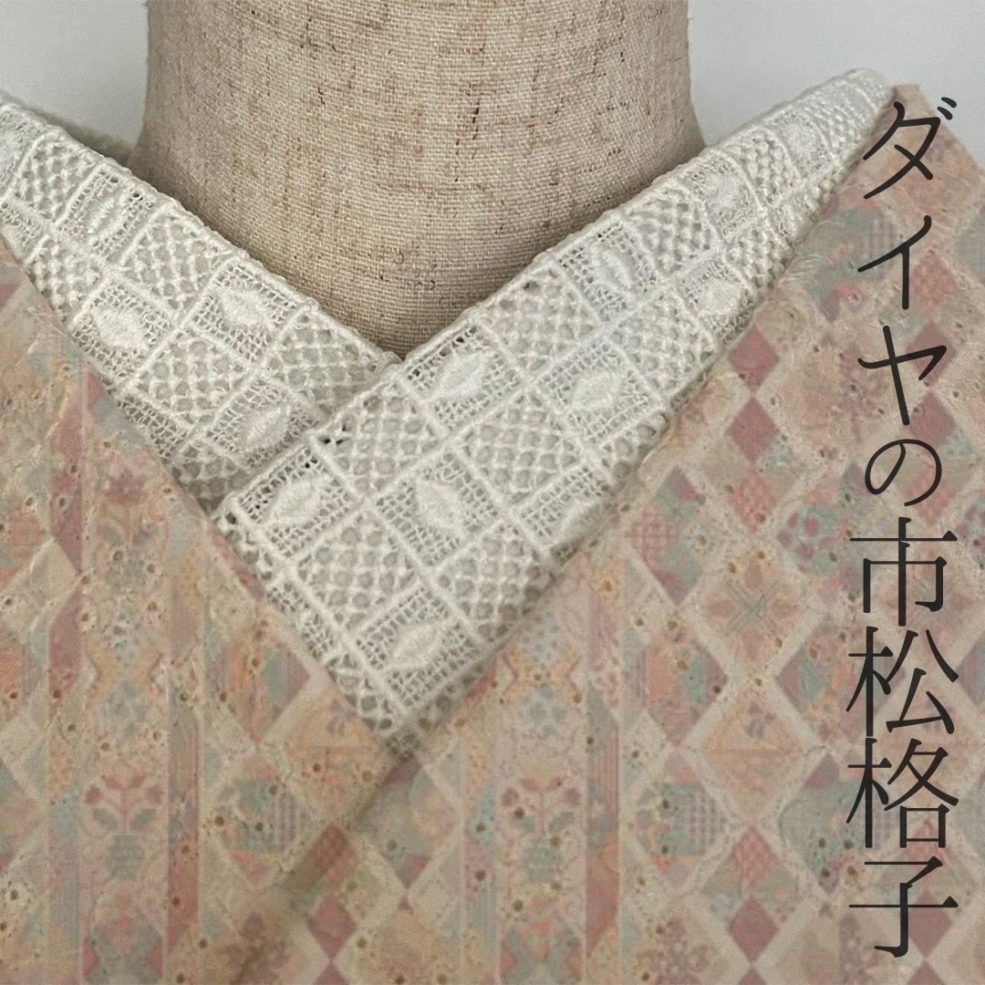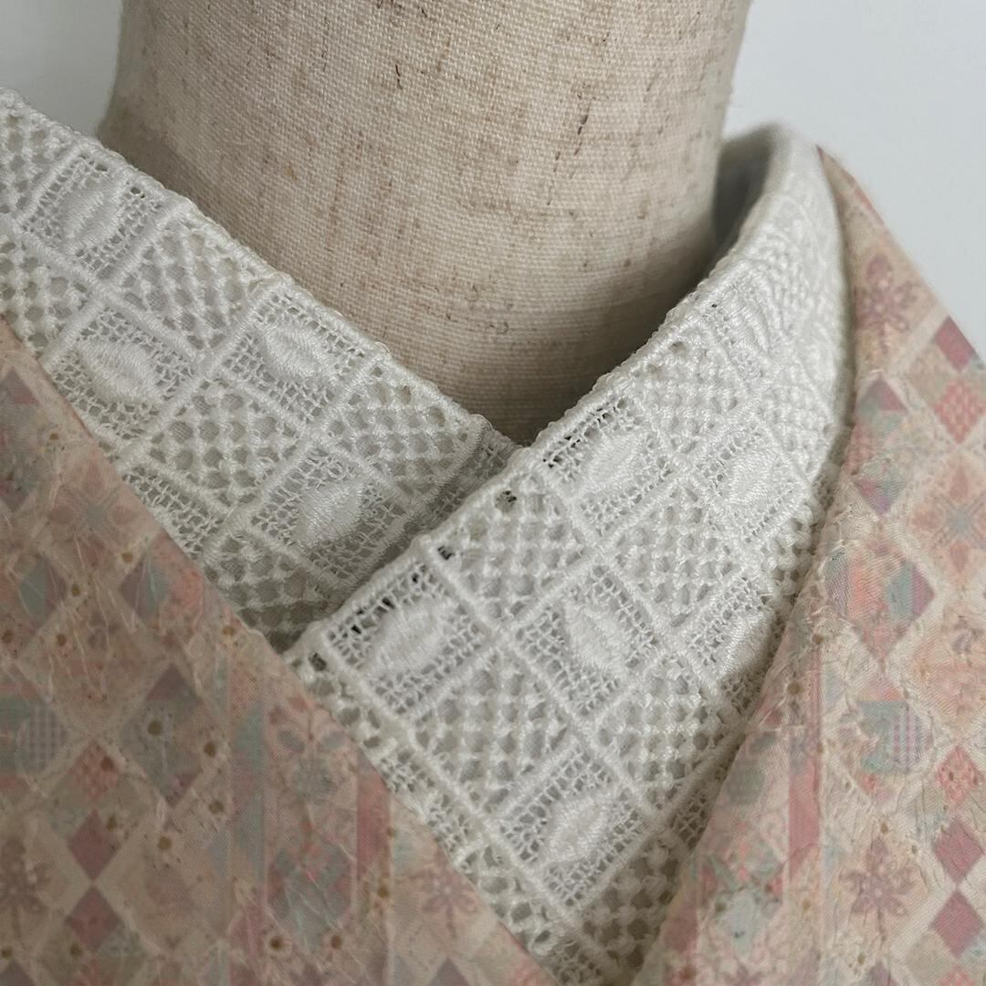 半衿 ダイヤと市松格子 オフ白 コットンレース 半襟 レトロ クラシック