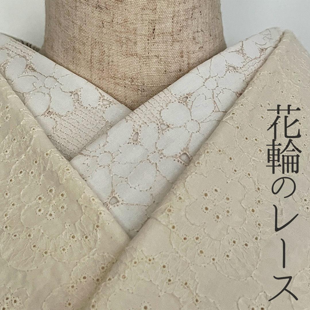 半衿 花輪のコットンレース 半襟 オフ白にアイボリー エクリュ 生成 きなり