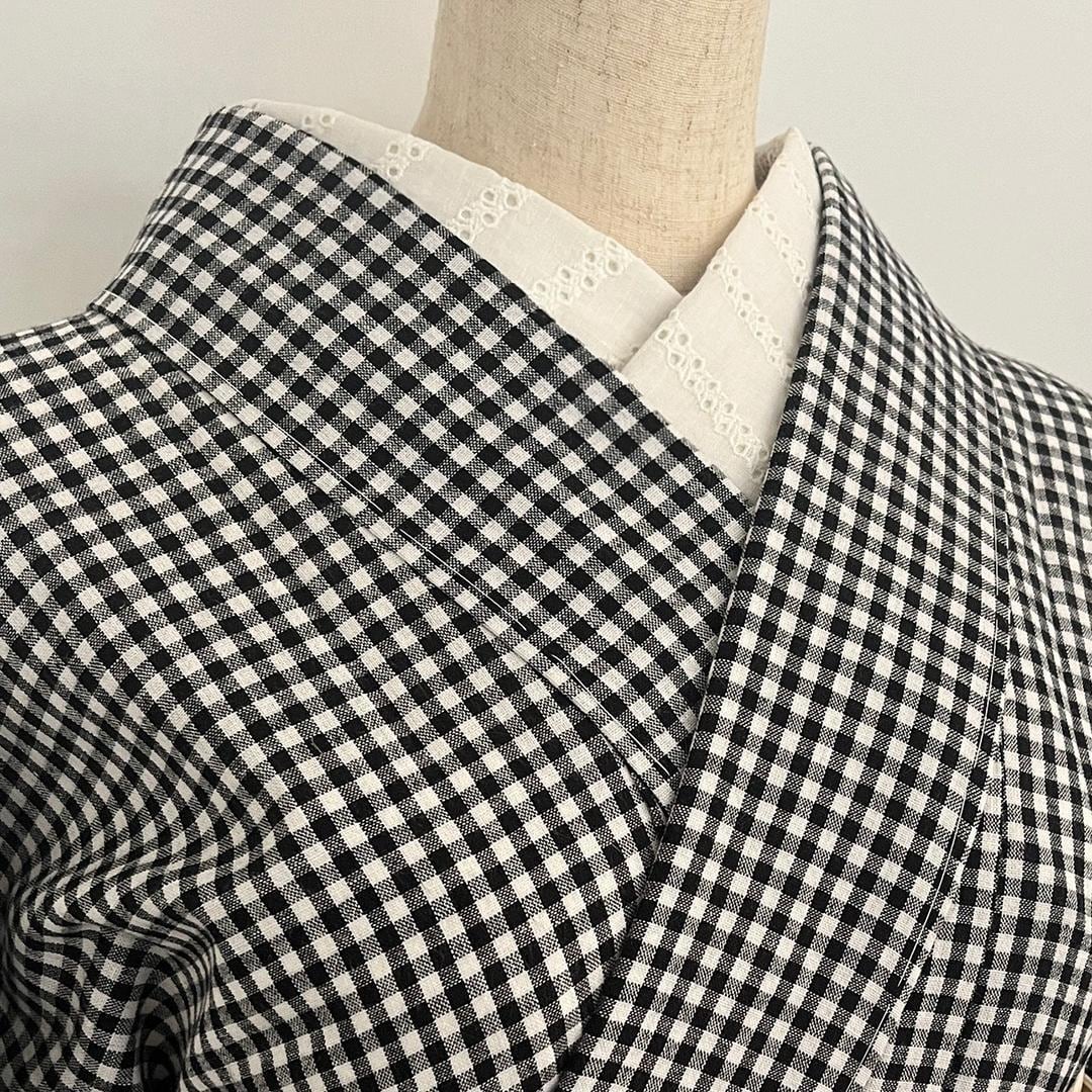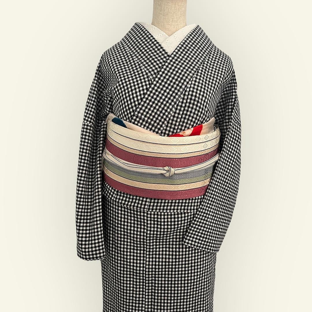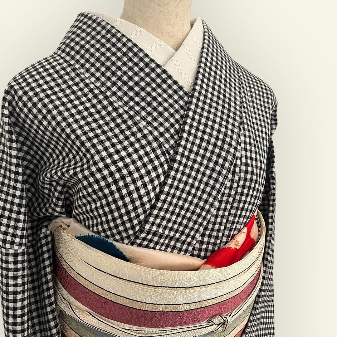 着物 単衣 一年中着られるシーズンレスきもの ギンガムチェック綿麻コットンリネン